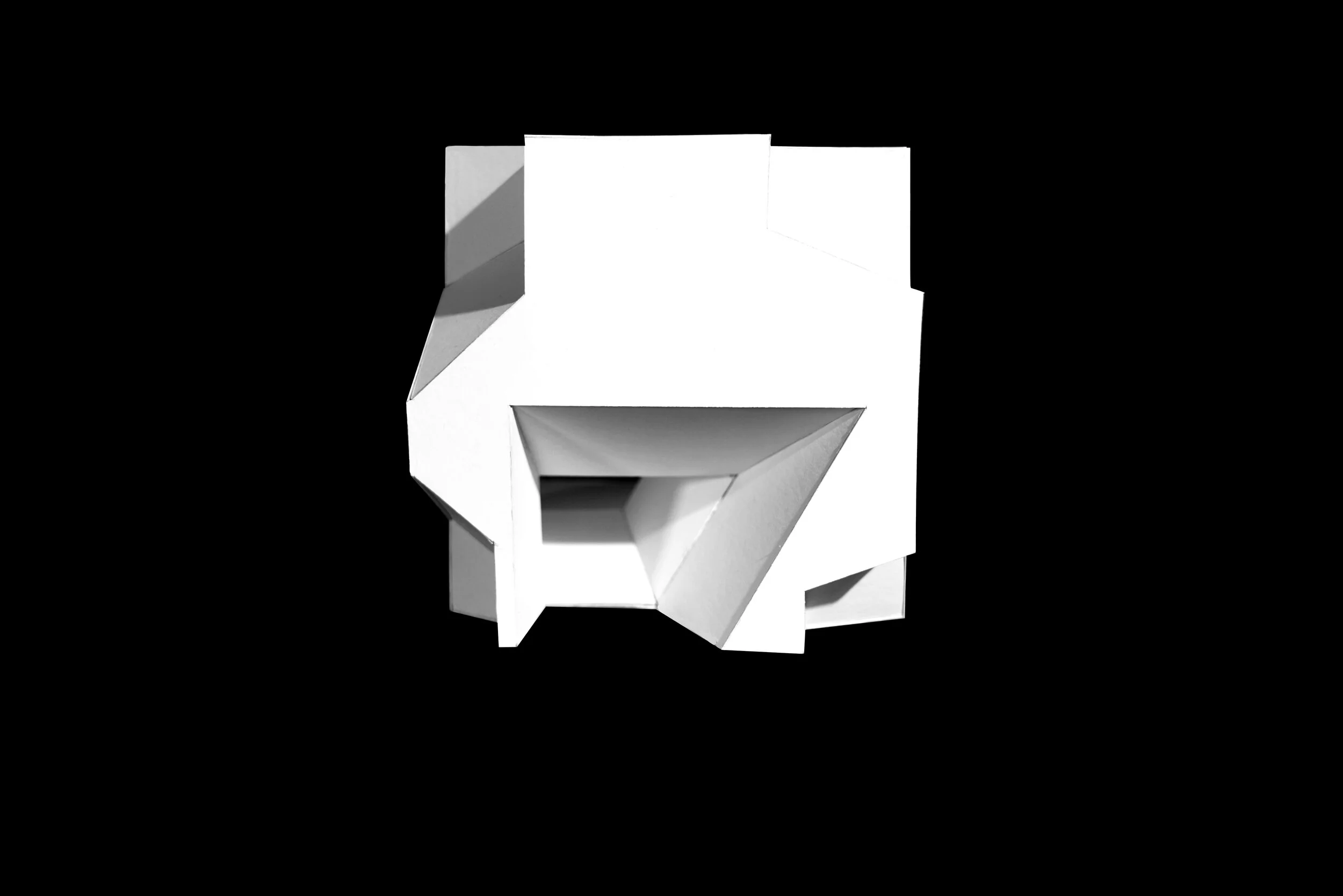 This model uses the spatial qualities from Rossi’s Monument to the Resistance to create a larger interior space, which connects to smaller exterior space. The spatial conditions create compression and expression of space as on proceeds through. The Worm’s Eye axonometric analyzes the interior expansion and compression of space through the shading and the projection of the volumes through the continued contours.